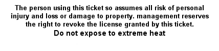 Our General Admission FastPrint thermal tickets are printed with two security features and are available in several stock colors. Included on all GA tickets is a standard disclaimer for no additonal charge which you can view below.